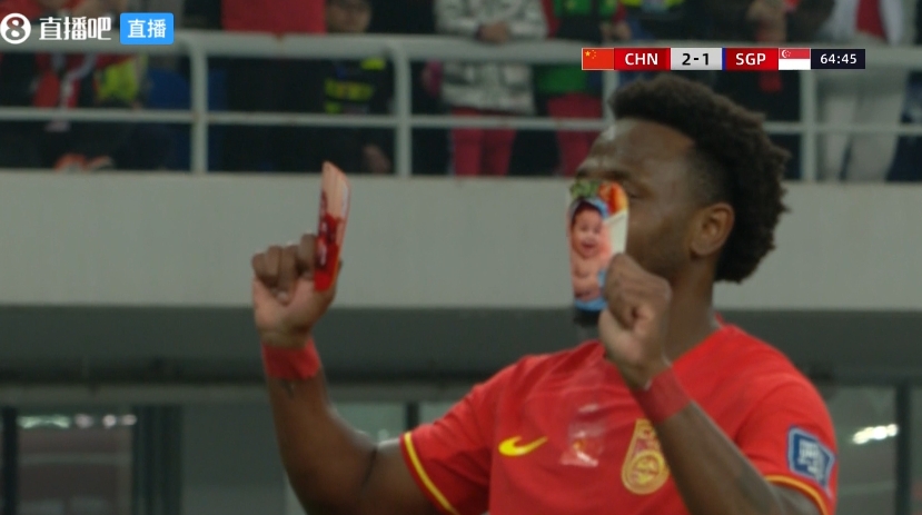 03月26日讯 国足vs新加坡第65分钟,费南多点射破门打入首球,进球后费南多空翻庆祝,随后晒出自己印有自己孩子的护腿板!