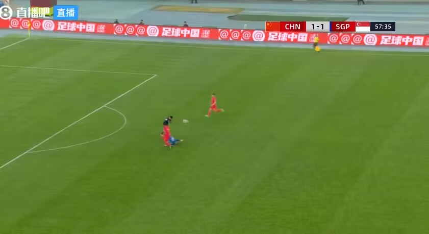 03月26日讯 世预赛亚洲区C组第4轮,国足主场对阵新加坡。新加坡打出反击,王大雷冲出禁区头球解围。