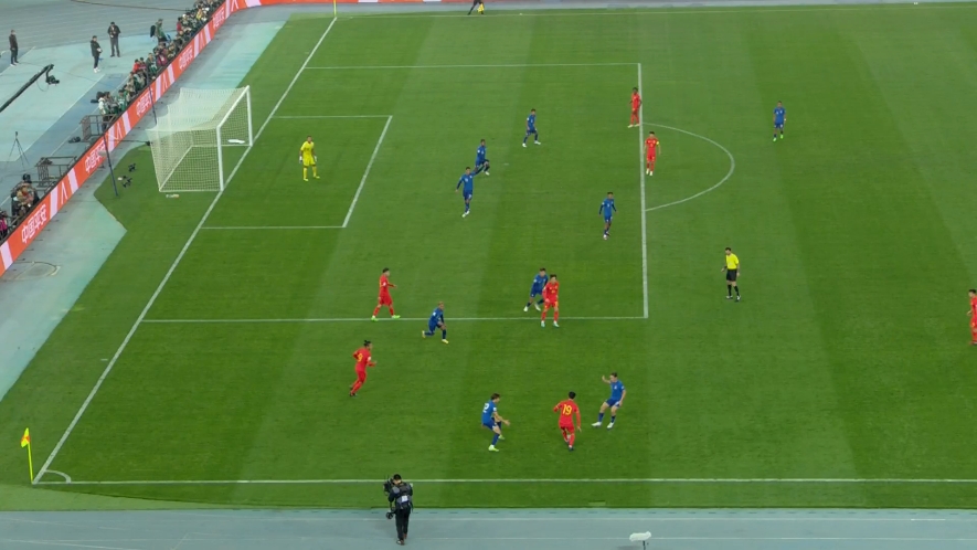 张玉宁越位一大截,刘洋传给他,边裁示意越位、