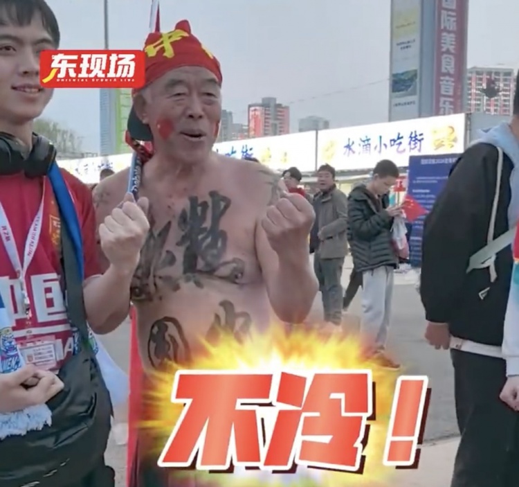 今天,“精忠报国”大爷来到了天津,在天津奥体中心的外场,有球迷问他“冷不”,大爷则表示“不冷”,并与众多球迷一同高喊起了“中国必胜”的口号。