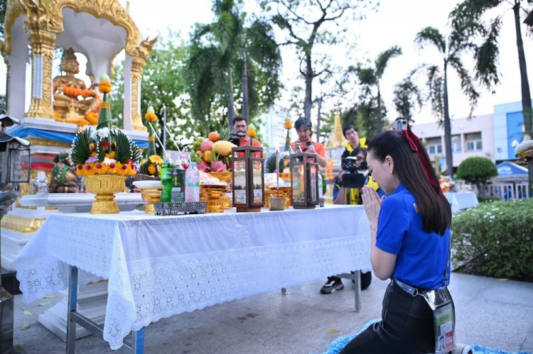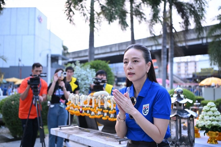 伍伦盼女士和泰国国家队球员们一同祭拜了圣物,希望在这样一场重要的比赛进行之前,给予队伍以士气上的支持。