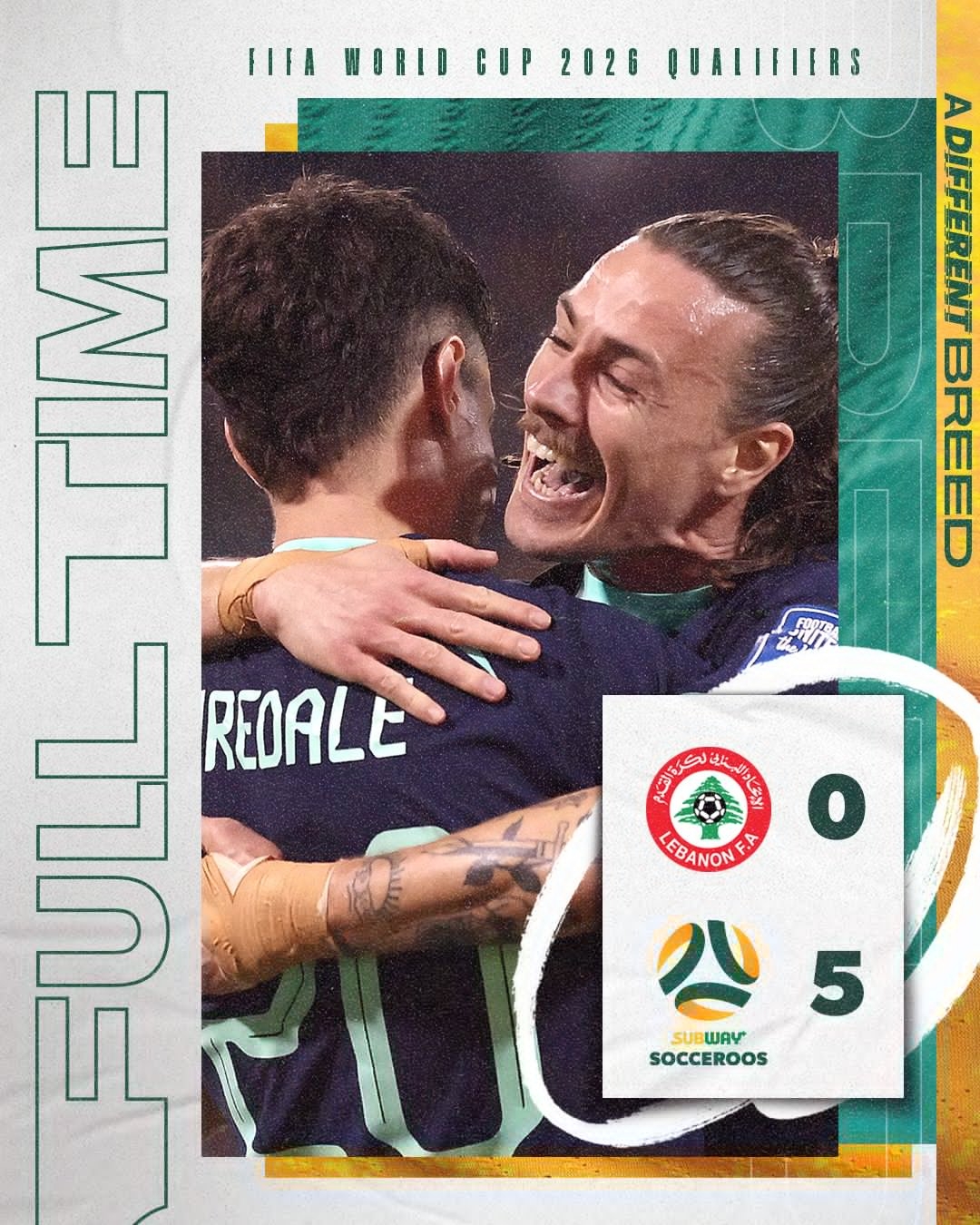 03月26日讯 世预赛亚洲区I组结束第四轮的一场较量,澳大利亚客场5-0大胜黎巴嫩,澳大利亚4战全胜打入15球且1球未丢,提前2轮晋级,成为首支晋级18强赛的球队。