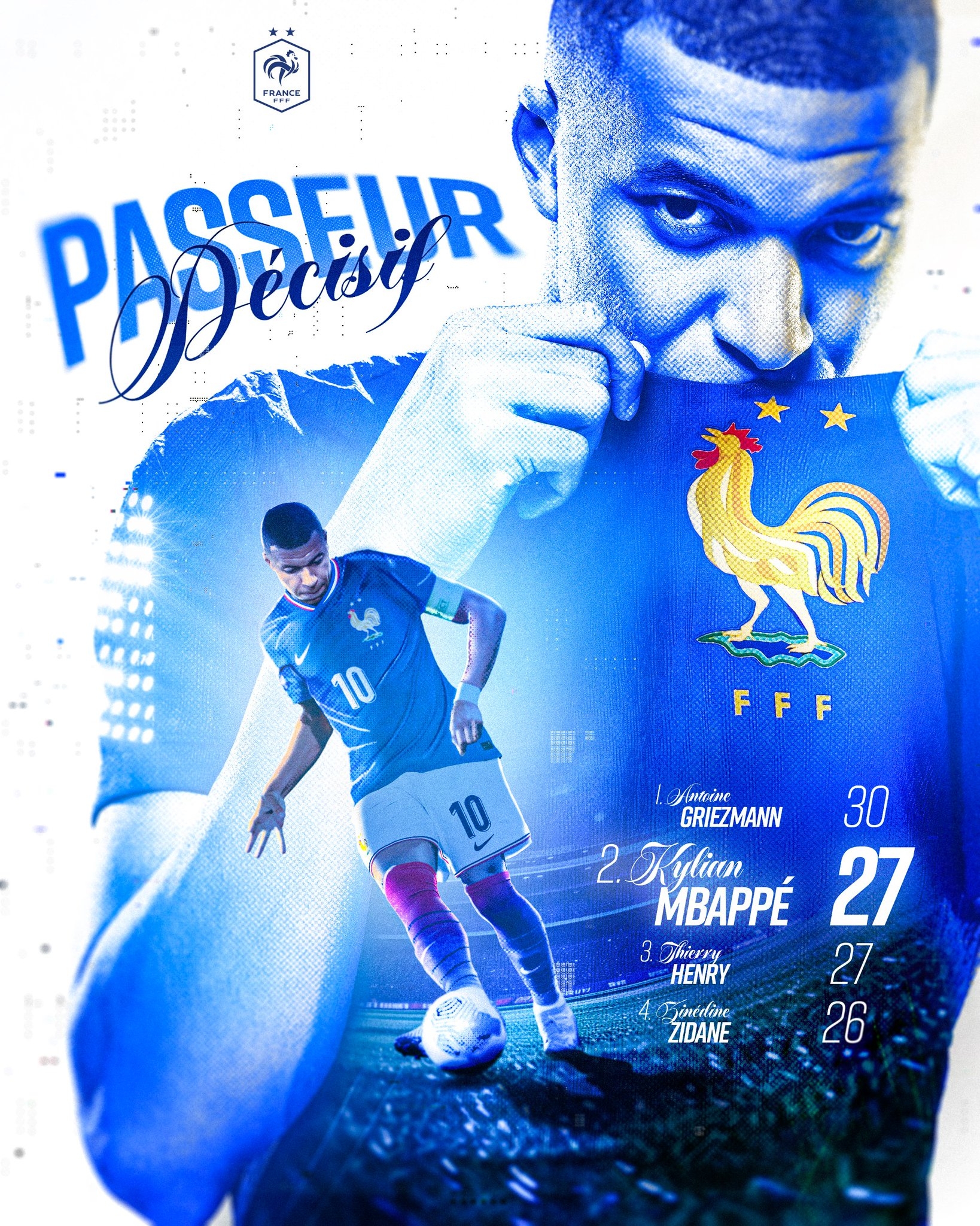 据法国队官方数据统计,这是姆巴佩在国家队的第27次助攻,追平亨利,并列法国队历史助攻榜第二位,仅次于30次助攻的格列兹曼。