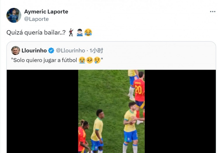 赛后有博主晒出维尼修斯推搡拉波尔特的视频,并讽刺道:“我只想踢球