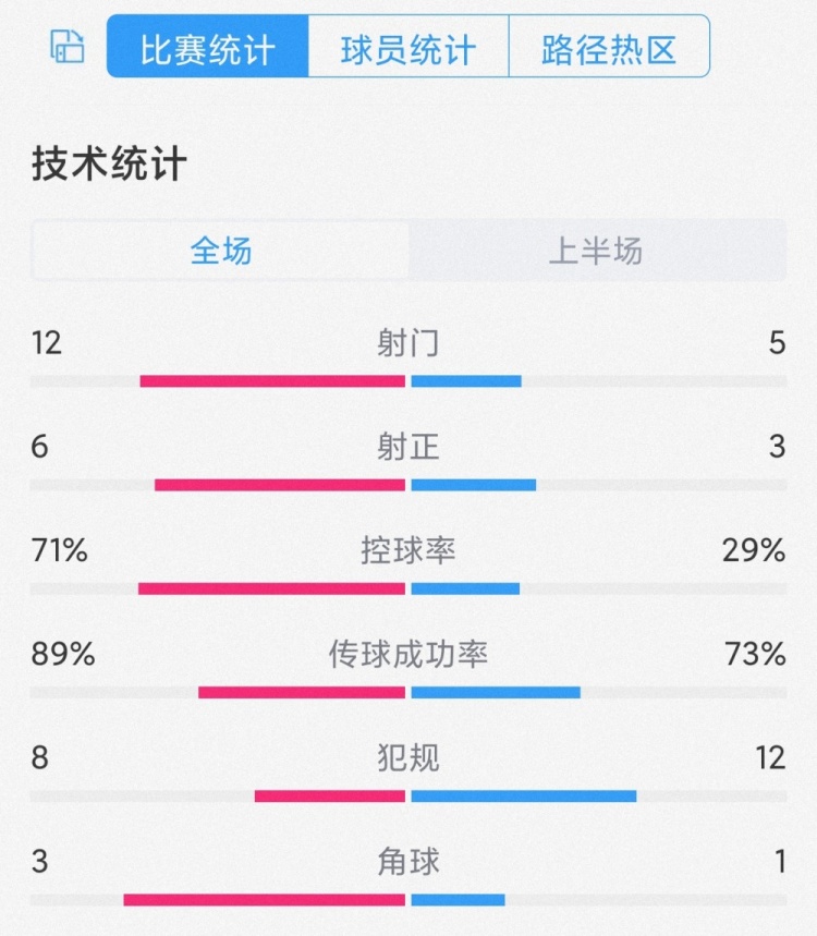 0-1落后,阿根廷vs哥斯达黎加半场数据:射门12-5,射正6-3