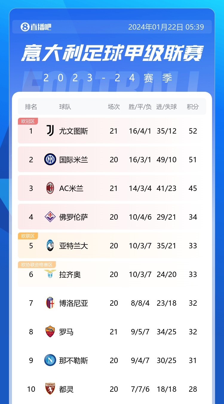 03月31日讯 尤文0-1不敌拉齐奥,积分榜上已落后第二的米兰6分,落后榜首国米17分。