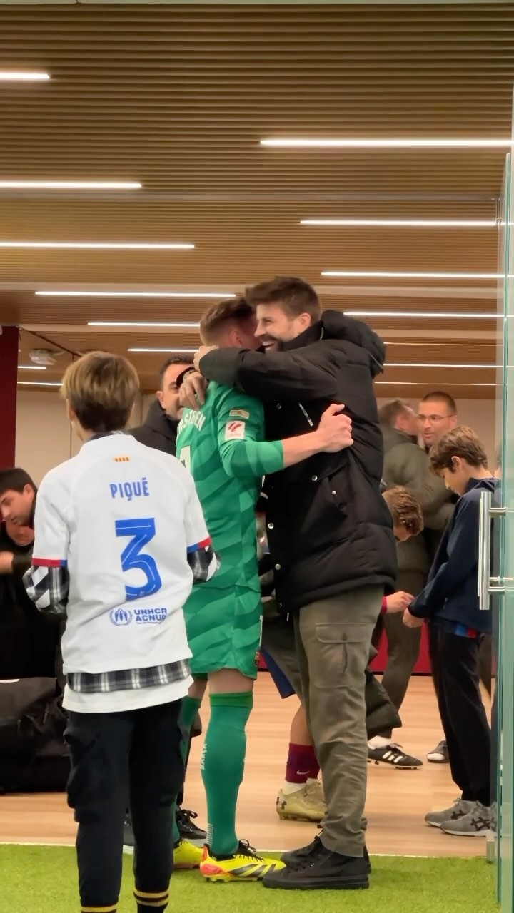 巴萨官方在社交媒体上晒出皮克在球员通道内的视频,他与主帅哈维,以及门将特尔施特根等球员拥抱寒暄。