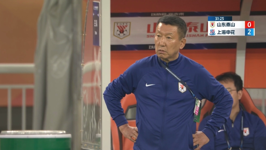 脸色铁青!泰山主场2球落后申花,主帅崔康熙双手叉腰面如土色