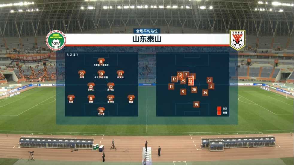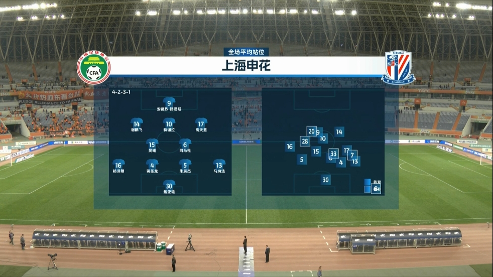 泰山0-3申花站位图:泰山堆积在左路,申花相对更平均