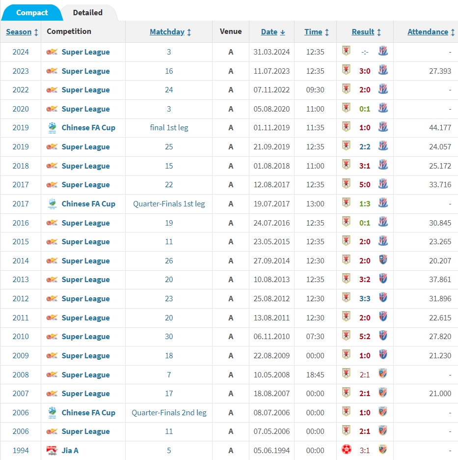 根据德转的数据统计,本场赛前,申花历史上22次客场挑战泰山,只取得3次胜利,最大比分胜利是2017年足协杯1/4决赛首回合的3-1,剩余19场申花2平17负,处于绝对下风。