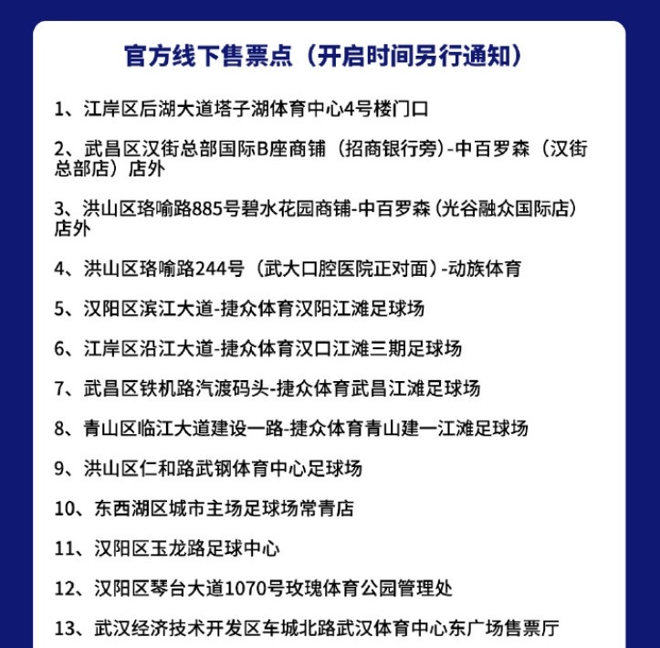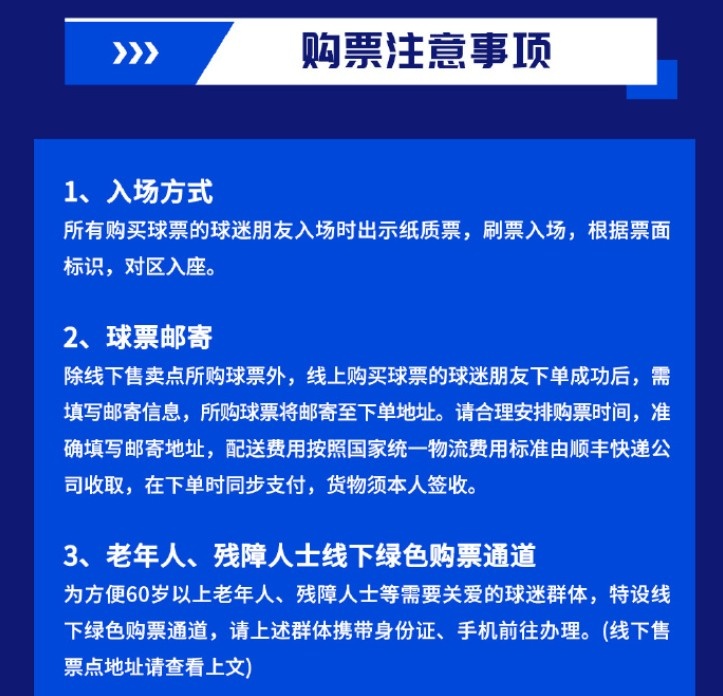 本场比赛球票已开启线上发售,欢迎各位球迷朋友进行购买,各线下售票点开启时间将另行公告。