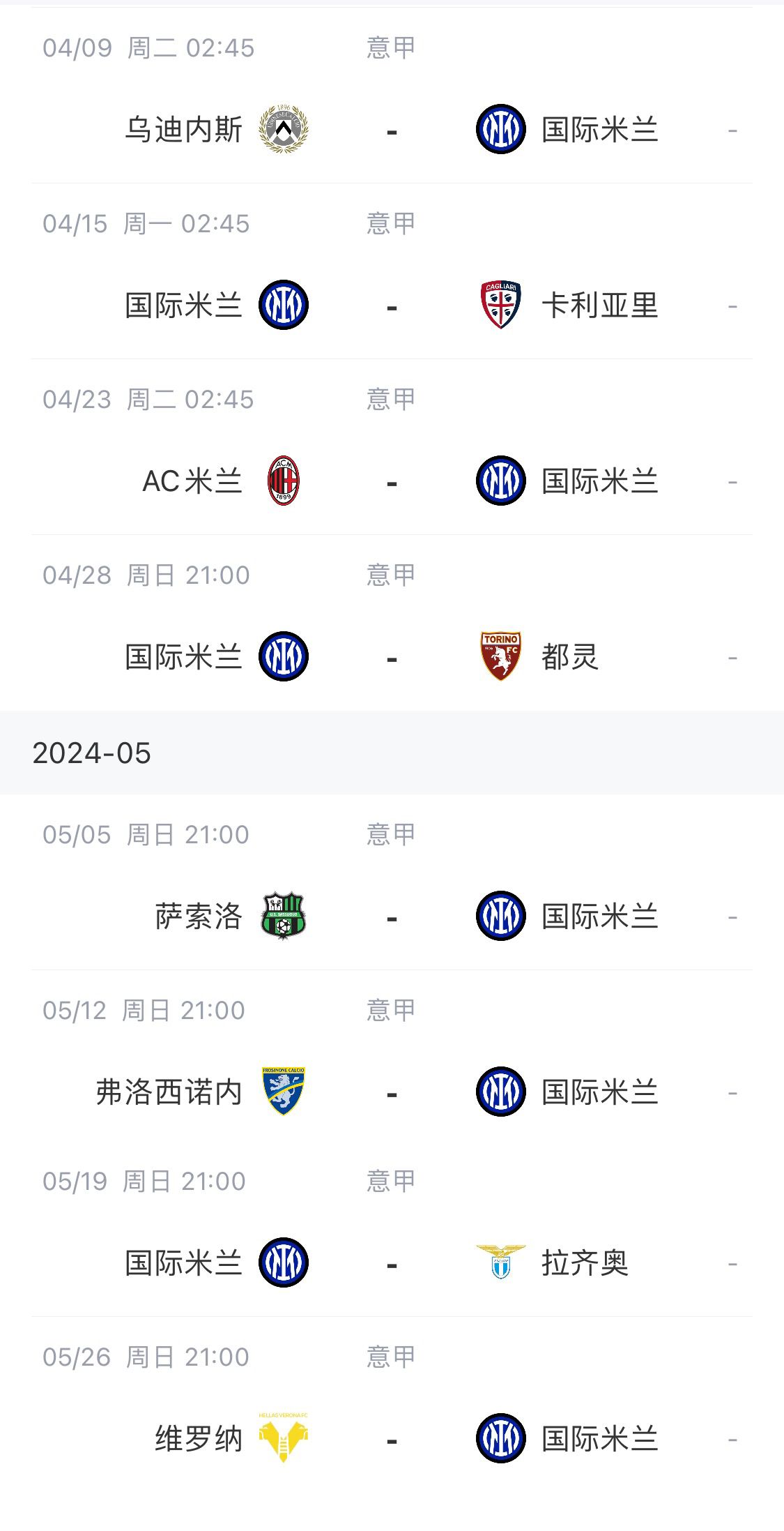 这意味着国米如果要打破这个纪录,需要接下来8场全胜(届时将达到103分)。国米本赛季意大利杯和欧冠已经出局,目前全力备战剩下的8场联赛。