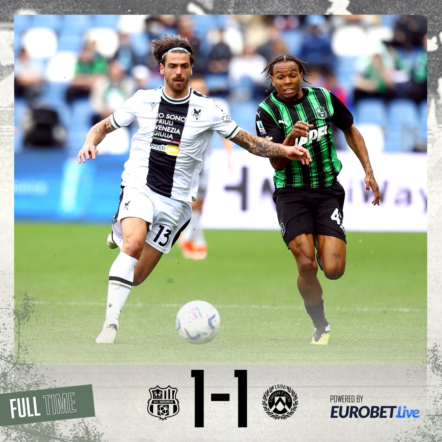 04月02日讯 意甲第30轮,乌迪内斯客场1-1战平萨索洛,这是乌迪内斯本赛季在意甲的第16场平局,目前4胜16平10负积28分排名第14,赢的四场球对手分别是AC米兰、博洛尼亚、尤文图斯、拉齐奥。