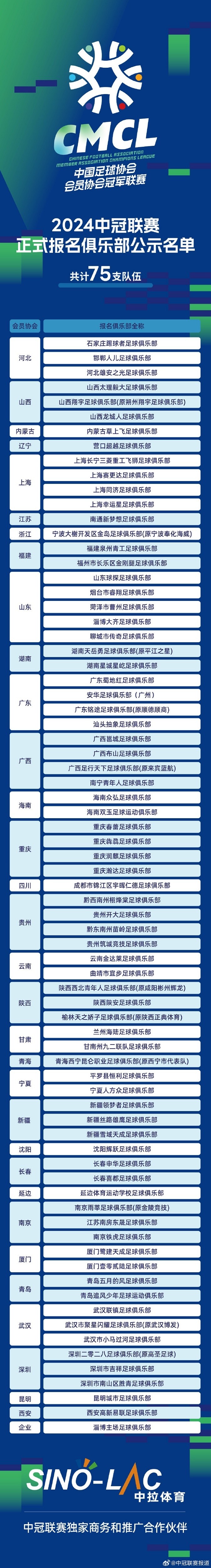 有你的家乡球队吗?新赛季中冠报名工作结束,共75队报名