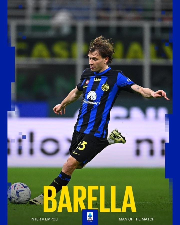 此前,国际米兰在意甲联赛中2-0战胜恩波利,巴雷拉本场比赛表现出色,在运动战中创造7次机会,创造本赛季意甲球员的单场纪录。